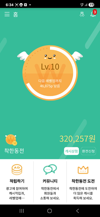 광고 참여하고 캐시지급 받고,경험치를 모아서 더 많은 캐시에 도전.